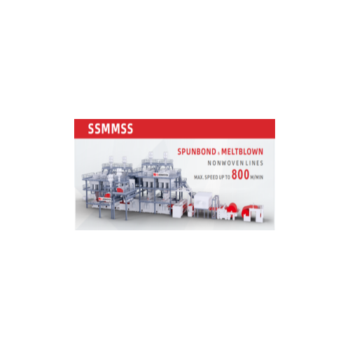 六模头SSMMSS 纺熔非织造布生产线,结合纺粘与熔喷技术为一体,机械速度最高可达800m/min, 无纺布最低8克重,广泛应用于卫材医疗领域。独家专利双层成网技术,在生产优质产品的同时,也能大大降低能耗,深受国内外客户好评。