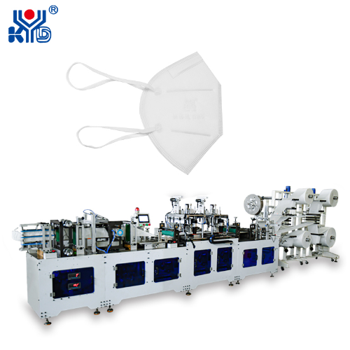 本机台是 一台自动化折叠头挂式口罩生产设备,从口罩本体生产到头带熔接,鼻线熔接直至出成品,完全自动化,PLC微电脑控制稳定性高